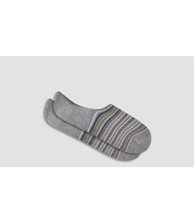 Step into comfort with these grey invisible (no show) socks with multi coloured stripes made with mercerized cotton. Durable hand linked toe and ribbed midfoot arch band and reinforced heel seams.