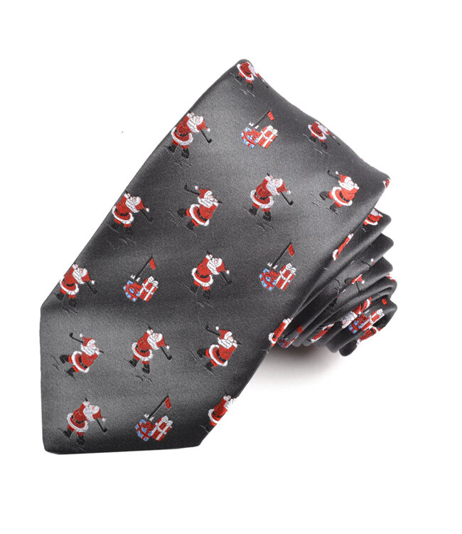 Charcoal Golfing Santa Christmas Tie