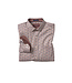 Long sleeve light brown cotton sport shirt with brown and navy triangle pattern. The hidden button down collar is always a winner and it has the important chest pocket too. The double buttons at the sleeve cuffs is convenient and the dark brown and navy geometric pattern on the inside of the collar and sleeve cuffs is a nice added touch.