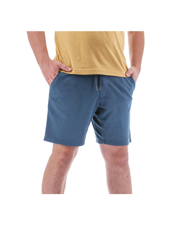 Casual comfort in these midnight navy pull on shorts with an elastic waistband and drawstring. Flat front design with open front pockets and all day comfort to go with your favourite t-shirt.