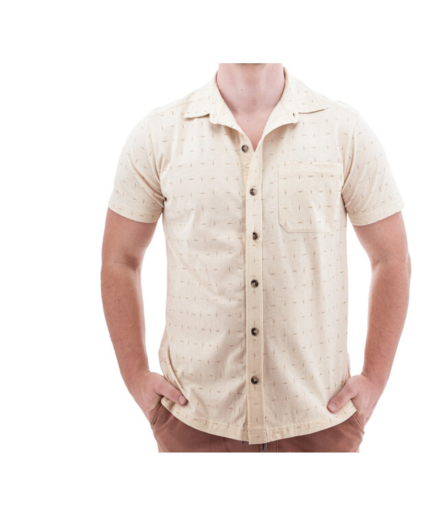 Effortless casual style in this natural colour short sleeve shirt with a subtle digital print pattern. Easy button up you can pair with your casual bottoms in a comfortable soft touch with stretch.