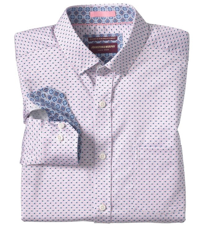 Classic Fit Pink Navy Diamond Print Shirt