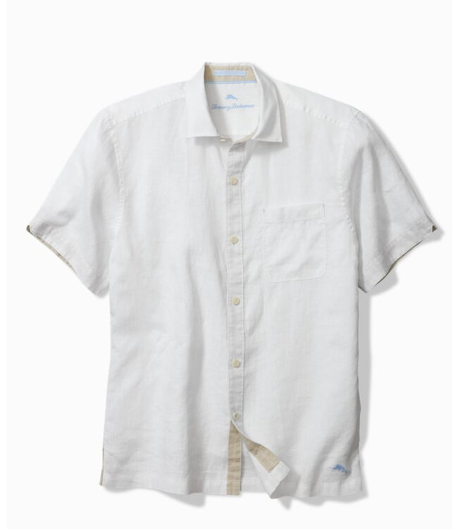 Feel the island breeze with cool comfort in this 100% linen short sleeve shirt. Easy relaxed style to coordinate with your shorts or light pants. Complimentary beige tone on the inside of the collar, sleeve cuffs and placket, a chest pocket and reinforced side vents so your shirt falls right while untucked.