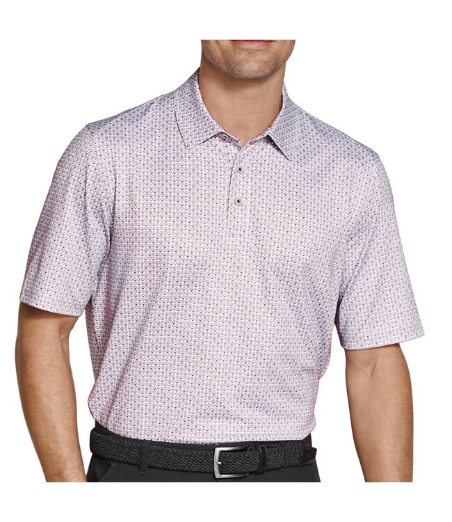 Performance is key whether your hitting the golf course or the deck. Try your luck with this grey three button short sleeve polo with a fun club, heart, diamond and spade pattern in Johnston & Murphy's XC+ extreme comfort. The enhanced stretch allows you to move freely while enjoying the quick dry and easy care features.