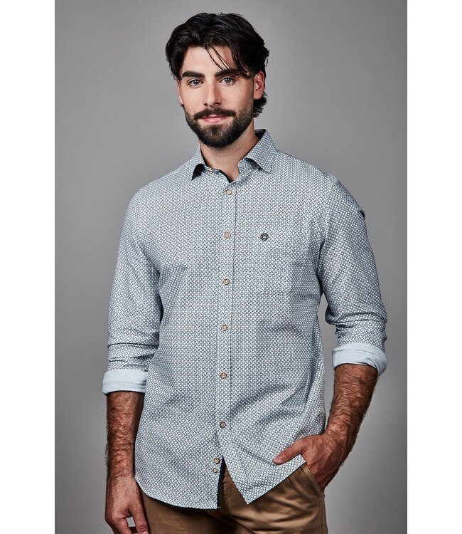 Modern Fit Green Blue Print Shirt