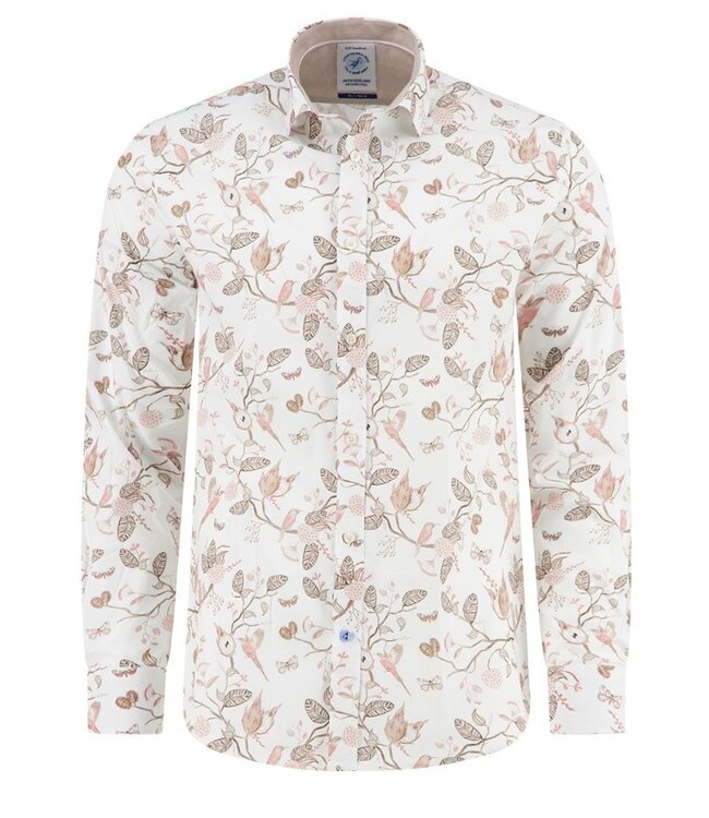 Feeling the earth tones and new season vibes in this sand coloured long sleeve shirt with trees and bird pattern from A Fish Named Fred. Striking pattern on its own with your chinos or dress it up with coordinating vest and sport coat for a good look for a special event. The signature details are great including the name embroidered on the inside of the left sleeve cuff, fish scaled buttons and coordinating stitching. Feels great with its soft cotton feel and a little stretch is always welcomed.