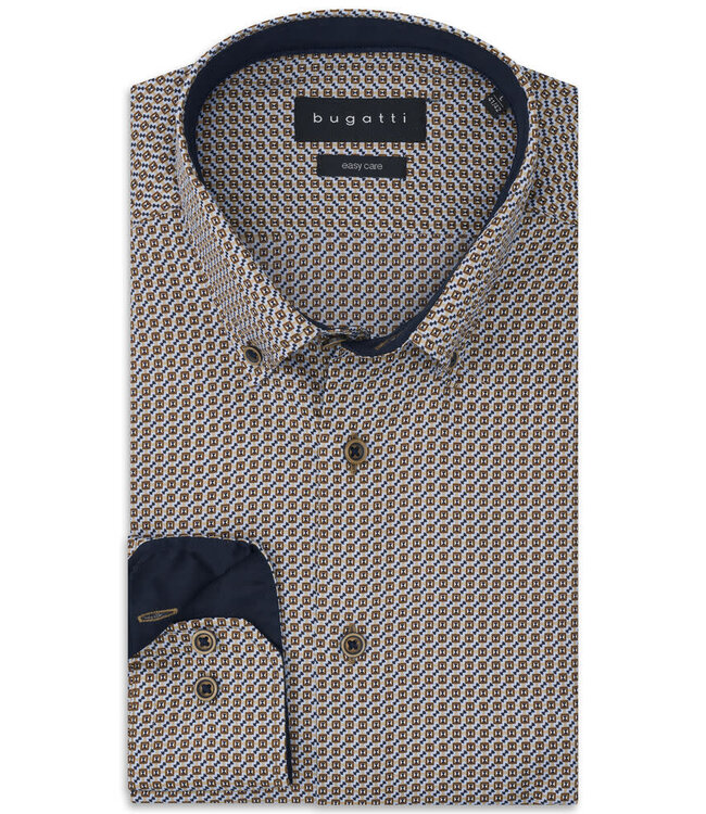 Modern Fit Tan Blue Print Shirt