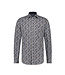White long sleeve tan and navy paisley pattern in a comfortable cotton. The coordinating two toned buttons blend nicely and the dark blue on the inside collar and sleeve cuffs help to balance the pattern. The stylish hidden button down collar keeps it in place for a tidy business look and the chest pocket and double button sleeves are functional.