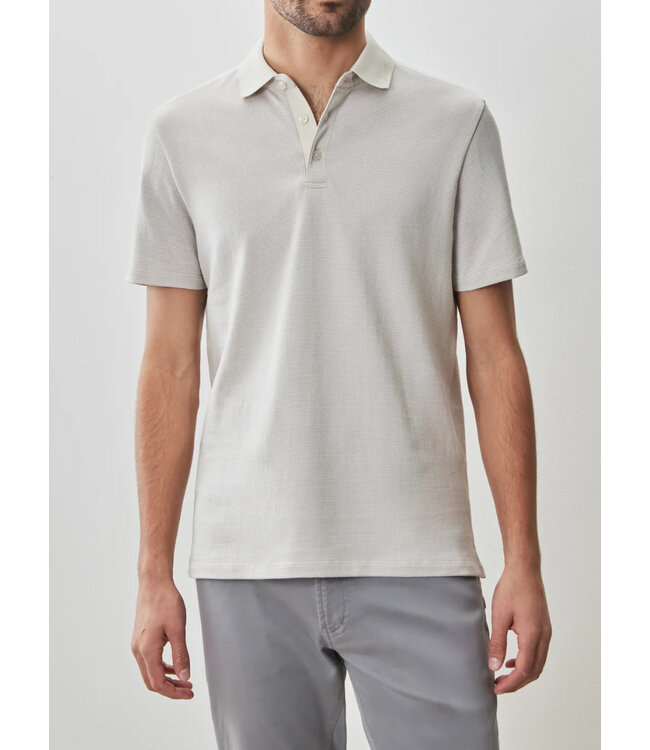 Contemporary design in this sand coloured short sleeve three button polo in a cotton gingham check pattern. It has a ribbed knit collar and fun race stripe polo on the shoulder for added detail. Soft feel with a sporty look for the office or hanging out at home.