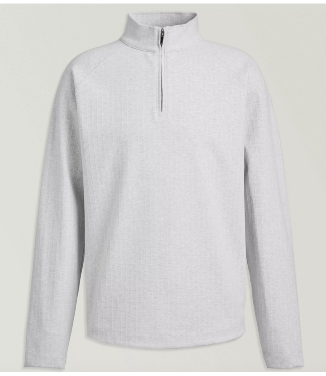 Feeling sporty vibes in this silver and white heather striped 1/4 zip layering piece. Contemporary style in a relaxed fit with stretch, breathable comfort and raglan sleeves giving you easy movement for guys on the go. Enjoy this super comfortable jersey performance sportswear and if you like to add the matching shorts check out this style/sku# DX0709-08.