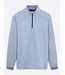 Lightweight long sleeve sky blue 1/4 zip in a performance style layering piece with elastic stretch at the back of the neck and sleeve cuffs. It has a navy zipper, breathable and easy care and an open bottom letting it fall nicely so you can move freely on and off the course.