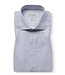 Slim fit, tapered long sleeve white sport shirt with a blue fan design and pearl buttons. Great shirt for the office with your chinos with the French placket, cutaway collar and double buttons at the sleeve cuffs.